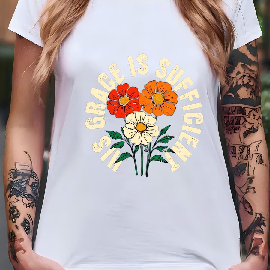Faithful Unisex Tee, God's Grace Flower Hoodie, Christian Graphic Shirt, Religious Apparel, Inspirational Top T-shirt