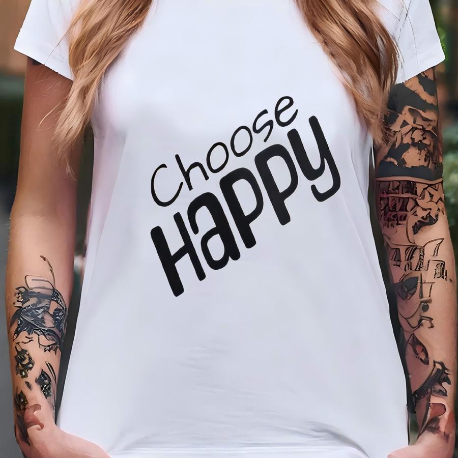 Choose Happy Cotton Canvas Tee - Positive Quote Reusable Shopping T-shirt