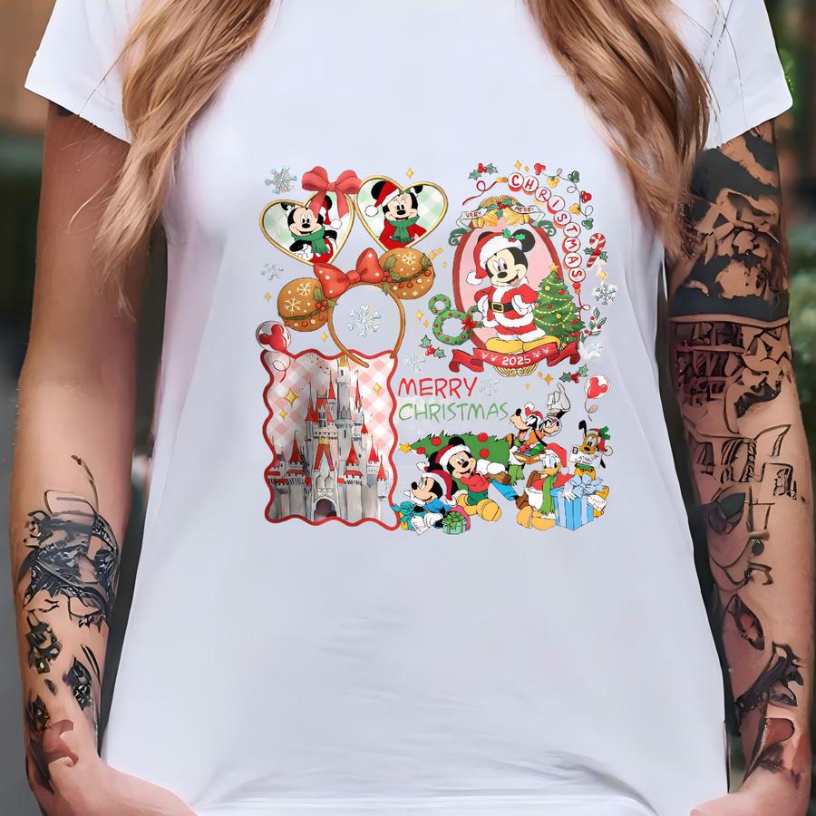 Retro Santa And Friends Christmas Sweatshirt, Very Merry Party 2025 Shirt, Family Matching Trip, Coquette Bow Castle Xmas Shirt T-shirt