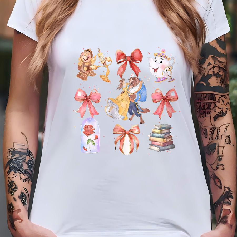 Beauty And The Beast Watercolor Coquette Bow Shirts, Belle Princess Book Shirt, Magic Kingdom, Family Trip Gifts T-shirt