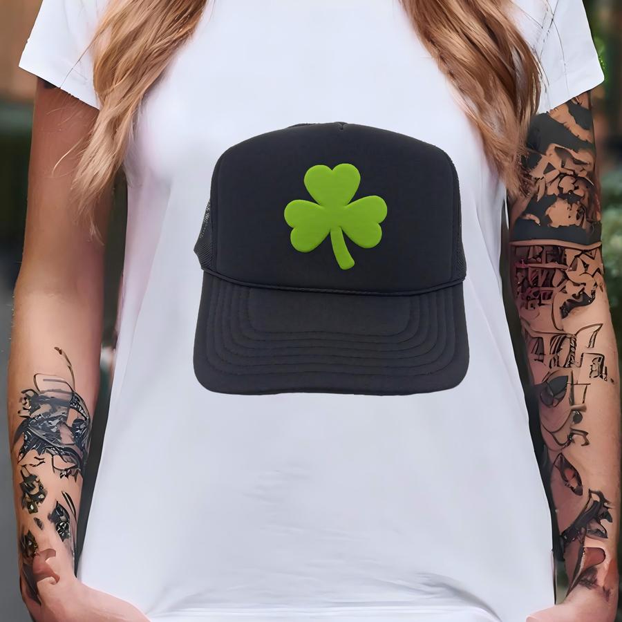 Shamrock Trucker Hat | St. Patrick's Day Cap | Irish Lucky Clover Hat | Green Mesh | Paddy's Day Gift T-shirt