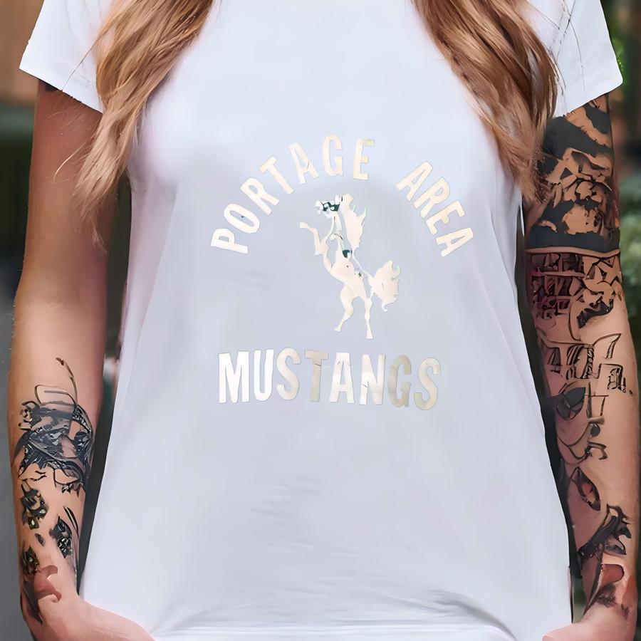 Vintage 80s 90s Portage Area Sweatshirt Mustangs Crewneck Mustangs Sweater Pullover Streewear Sportswear Style Nice Green Colour Size Medium T-shirt