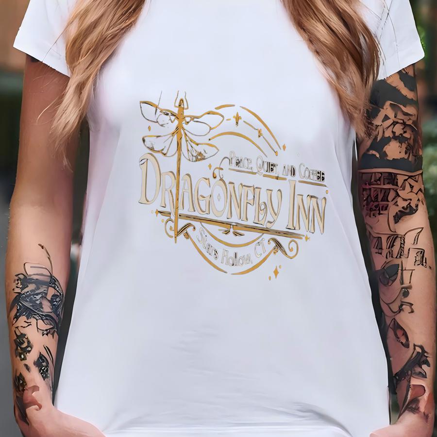 Dragoy Inn Shirt, Peace Quiet And Coffee Stars Hollow Tshirt, Bright Golden Dragoy Tee Shirt, T-shirt
