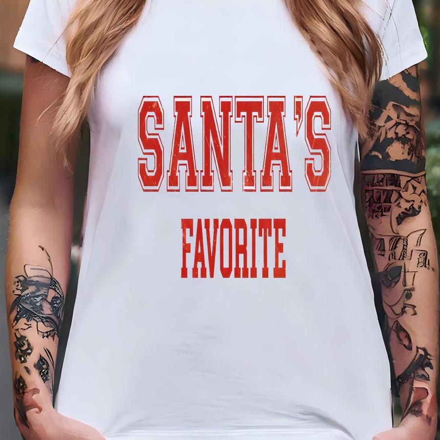 Santas Favorite Christmas Sweatshirt, Christmas Santa Text Hoodie, Womens Christmas Shirt, Christmas Gift Tee, Funny Christmas Shirt, Tsf249 T-shirt