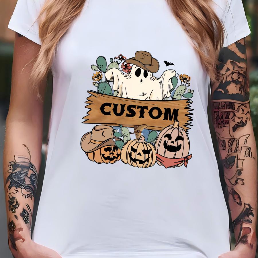 Custom Halloween Cowboy Ghost Shirt, Personalized Halloween Name Shirt, Ghost Western Boots Tshirt, Spooky Cowboy Pumpkin Shirt, Tsf226 T-shirt