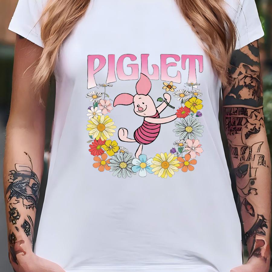 Retro Piglet Hoodie, Vintage Piglet Floral 90s Shirt, Family Friends Shirt, Piglet Characters Floral Tee, Tsf083 T-shirt