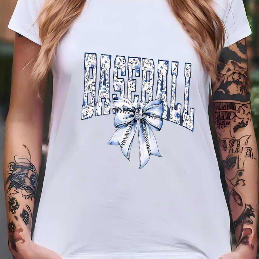 Coquette Baseball Blue Floral Mom Shirt, Toile Baseball Hoodie, Bow Baseball Lover Mama Shirt, Baseball Game Day Hoodie, Tsf112 T-shirt