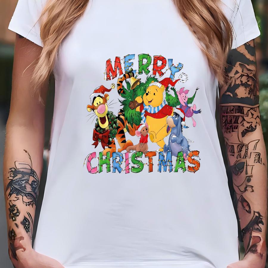 Characters Christmas Shirt, Merry Christmas Party Hoodie, The Pooh Eeyore Tigger Piglet Christmas Shirt, Tsf204 T-shirt