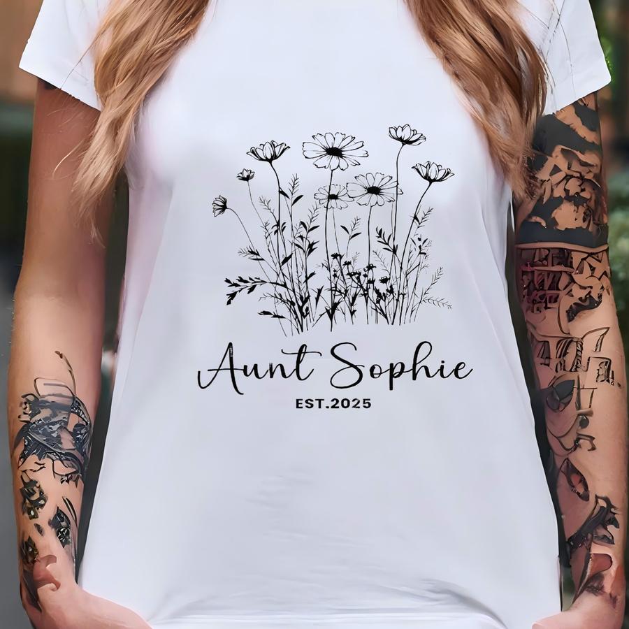 Christmas Aunt Mug, Personalized Floral Mug, Custom Name Auntie Gift, Holiday Pregnancy Announcement For Sister, New Aunt Gift, Auntie Gifts T-shirt