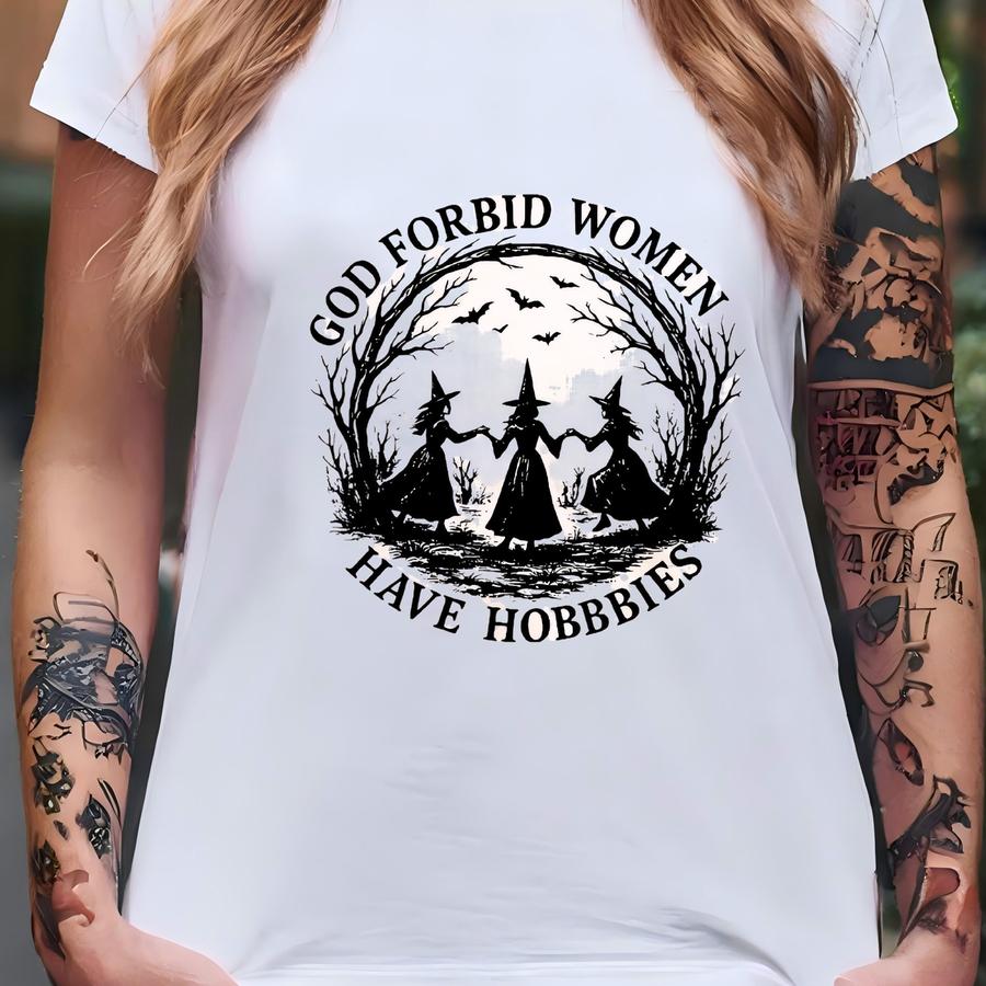 God Forbid Women Have Hobbies Shirt, Funny Witchy Tee, Sarcastic Coven Hoodie, Spooky Season Gothic Clothing, Witch Halloween Gift T-shirt
