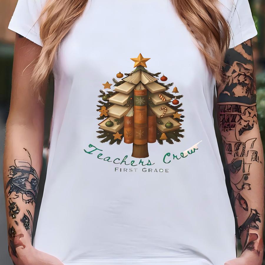 Teachers Crew Christmas Shirt, Teacher Christmas Tree Sweatshirt, Book Tree Teacher Tee, Teacher Team Matching Shirts, Teacher Gifts T-shirt