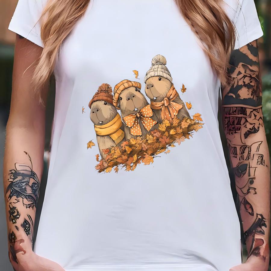 Fall Capybara Sweatshirt, Cute Cozy Season Shirt, Fall Sweatshirt Family Matching Fall Sweater, Autumn Animal Crewneck, Thanksgiving Gifts T-shirt