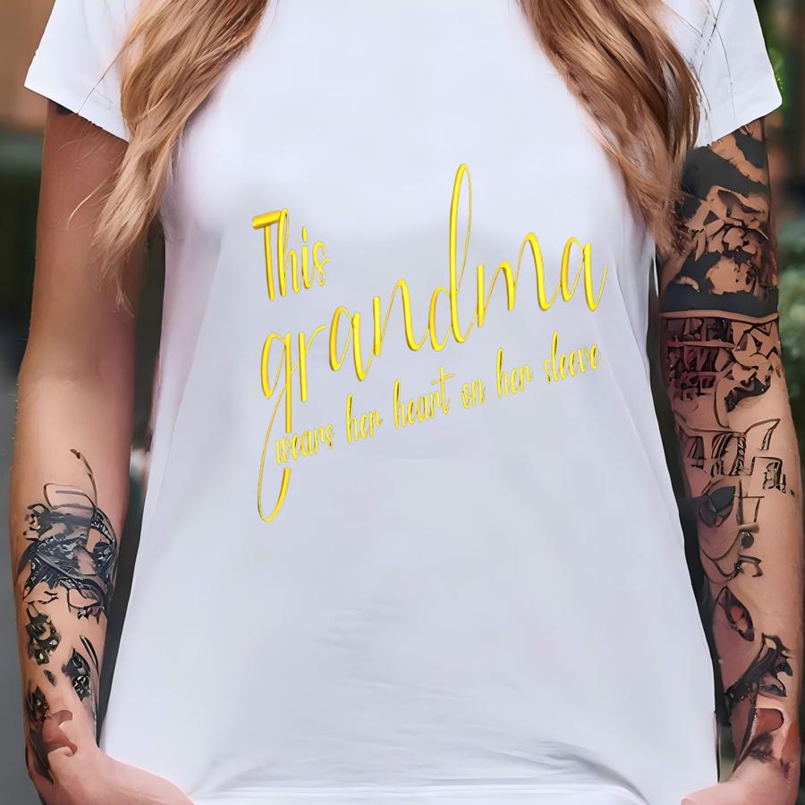 This Grandma Wears Her Heart On Her Sve, Personalized Grandparent Gift, Custom Grandma Sweatshirt Gift T-shirt
