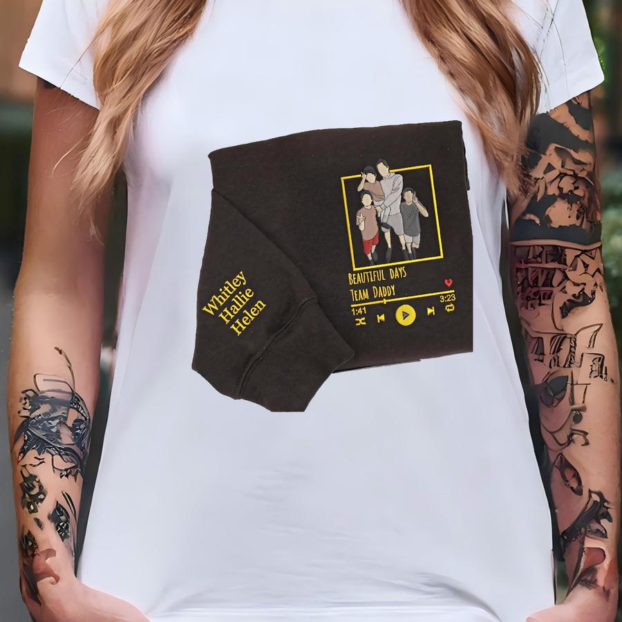 Custom Family Portrait Sweatshirt With Music Song: Sweatshirt With Picture, Personalized Dad Birthday Gift T-shirt
