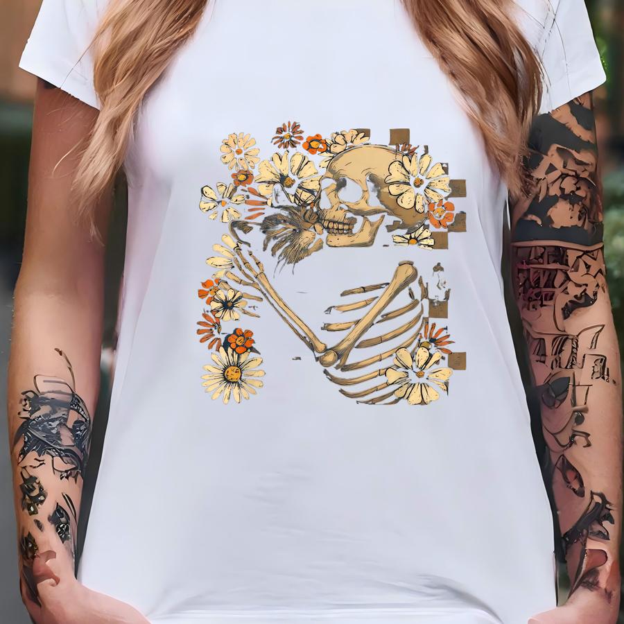 Skeleton Hugging Cat Floral Halloween Comfort Shirt, Cute Spooky Skeleton Cat Shirt, Cat Mom Gift, Halloween Gift, Halloween Floral Cat T-shirt