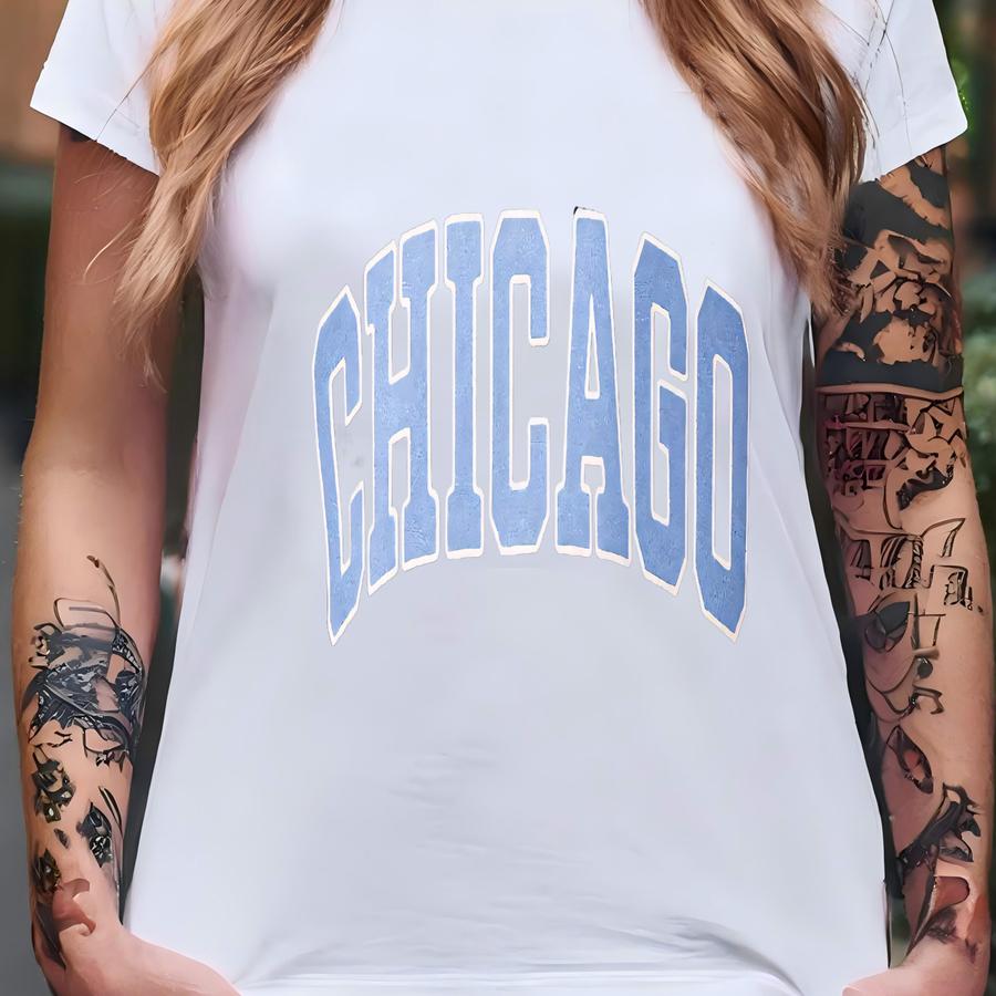 Chicago Sweatshirt Collegiate Crewneck Sweater Unisex Blue T-shirt
