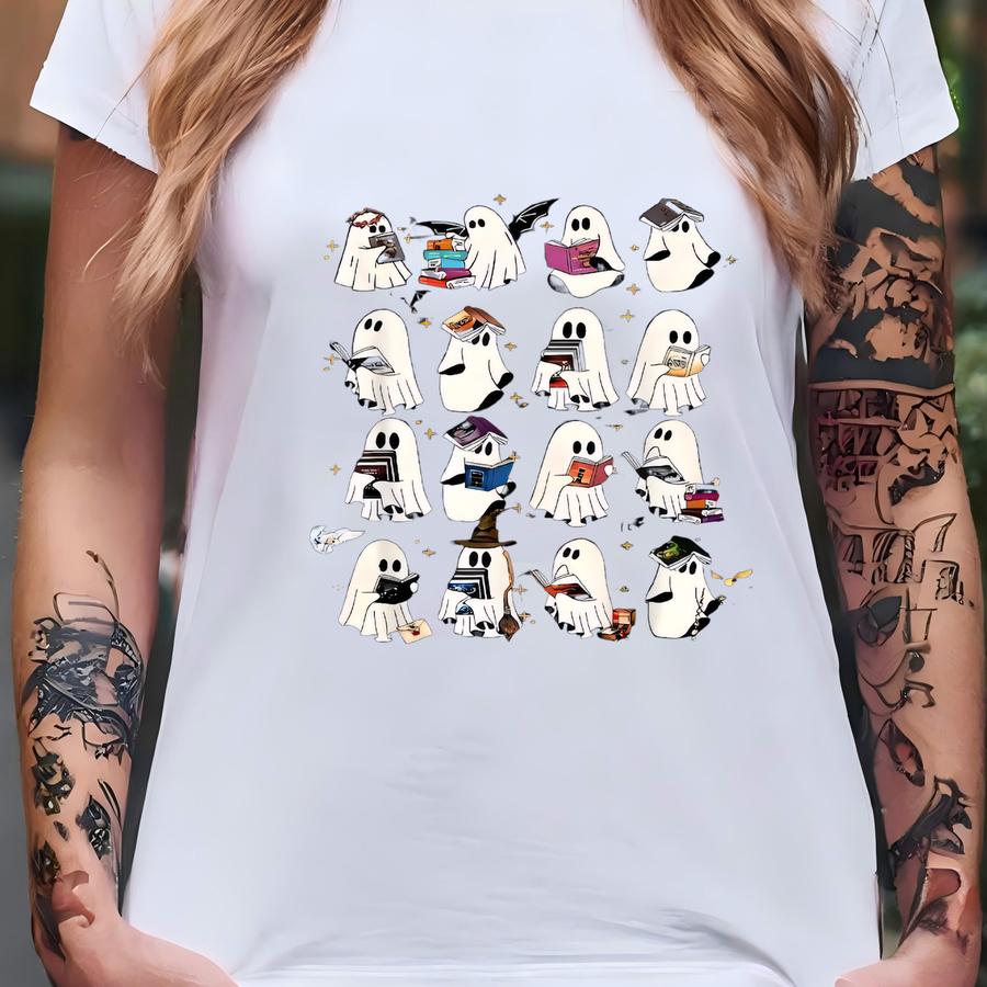Ghost Reading Book Fantasy Series Sweatshirt, Bookish Ghost Sweater, Spooky Library Shirt, Halloween Gift For Book Lovers T-shirt