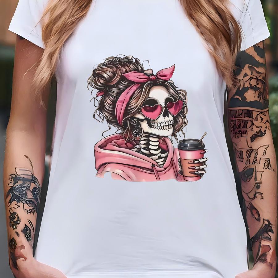 Coffee First Skeleton Graphic Tee: Funny Halloween Mom Hoodie T-shirt