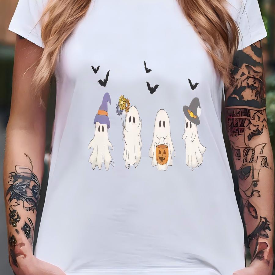 Cute Halloween Ghost Sweatshirt, Playful Ghost Crewneck Jumper, Bats Halloween Sweater, Halloween Festivities Pullover, Ghostly Sweatshirt T-shirt