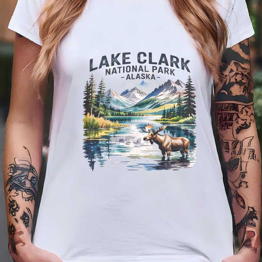 Watercolor Style Lake Clark Alaska Shirt, National Park Tee, Wildlife Moose Graphic Sweatshirt Hoodie T-shirt