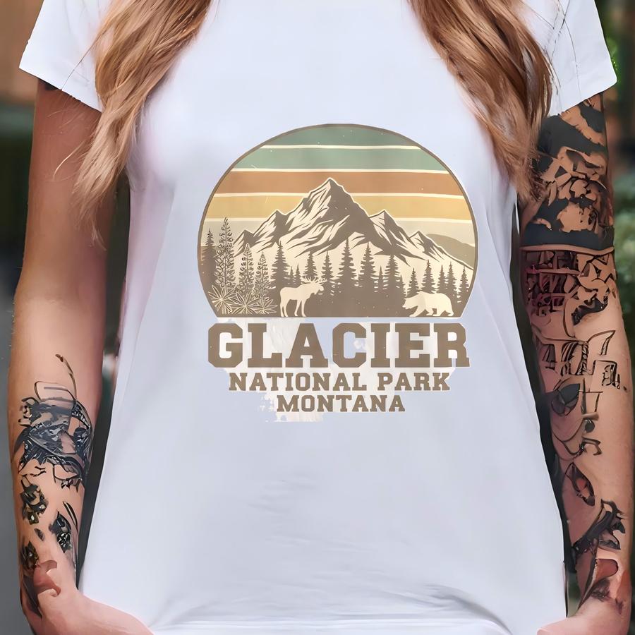 Retro Style Glacier National Park Shirt, Vintage Montana Nature Tee, Mountains Lover Sweatshirt Hoodie T-shirt