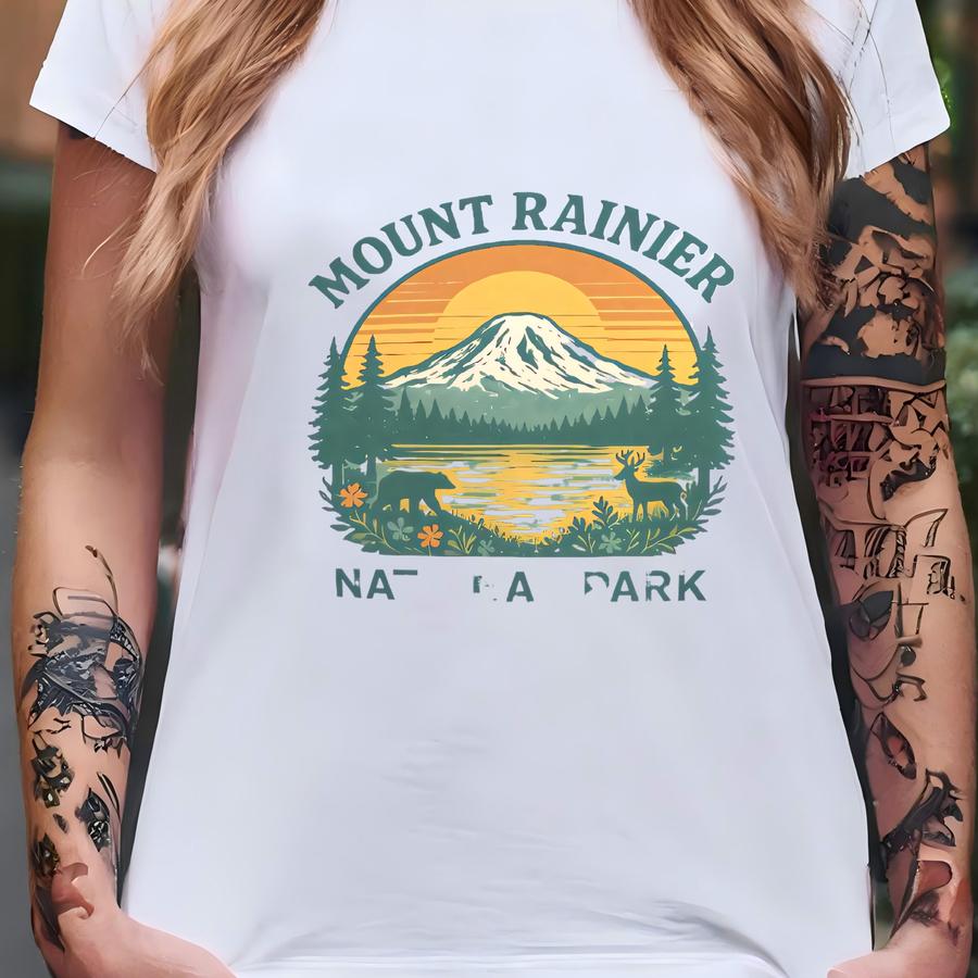 Vintage Style Mount Rainier National Park Tee Sweatshirt Hoodie, Washington Mountains Hiking Shirt, Nature Lover Top, Outdoor Adventure Gift T-shirt