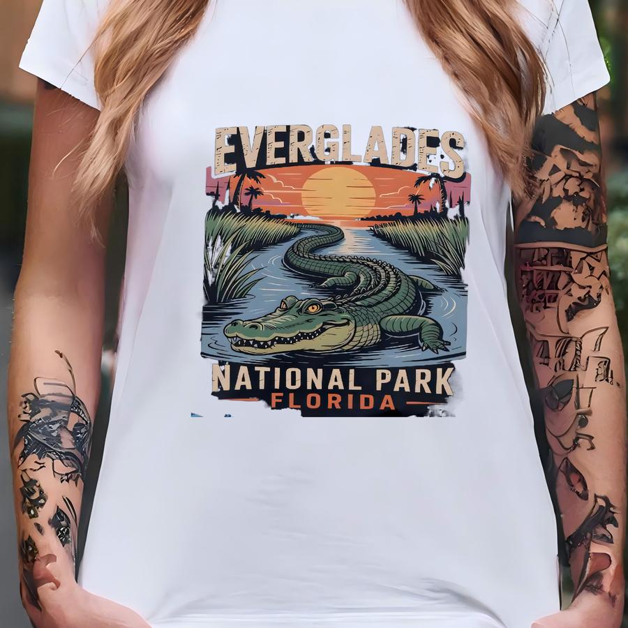 Everglades National Park Shirt, Florida Alligator Sunset Tee, Retro Swamp Wildlife Hoodie, Nature Gift For Outdoor Lover, Gator Graphic Top T-shirt