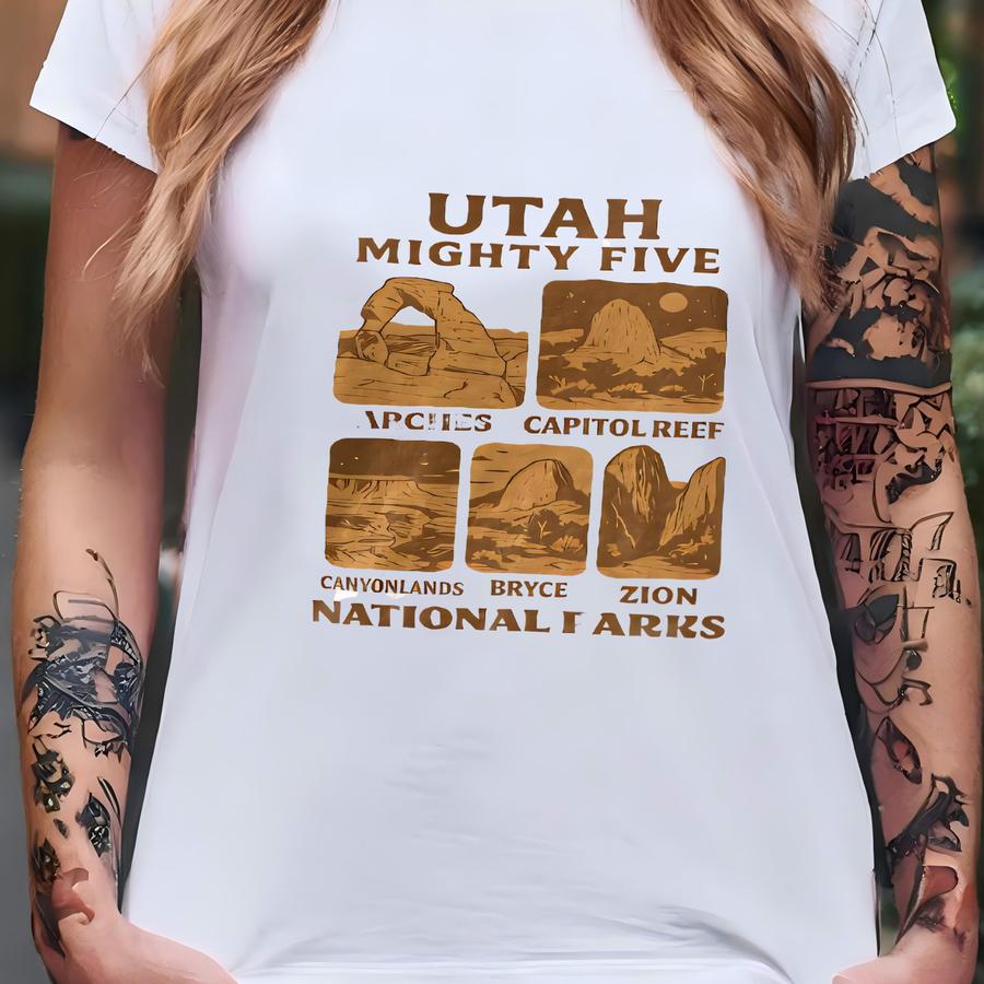 Vintage Style Utah Mighty Five Shirt Sweatshirt Hoodie, Retro National Parks Tee Featuring Arches, Zion, Bryce, Capitol Reef, Canyonlands T-shirt