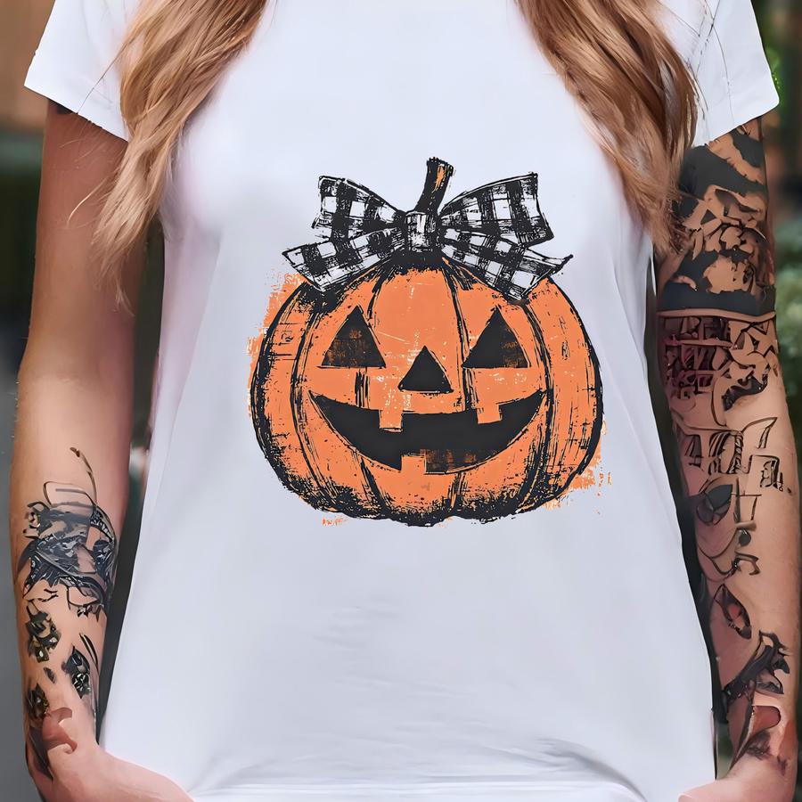 Retro Preppy Fall Pumpkin Sweatshirt, Halloween Jack O’ Lantern Hoodie, Ditsy Floral, Girly Autumn Hoodie, Checkered Bow Sweatshirt T-shirt