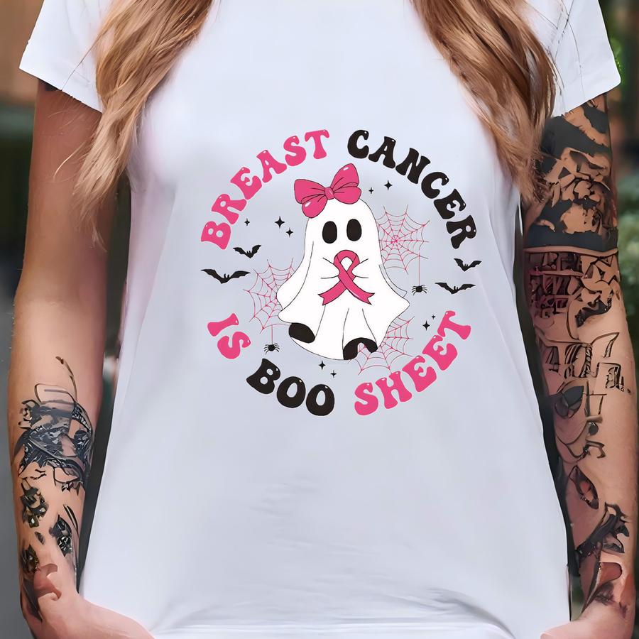 Breast Cancer Is Boo Sheet Sweatshirt, Back On My Boo- T Shirt, Ghost Ribbon Breast Cancer Awareness Shirt, Cancer Halloween Gift Shirt T-shirt