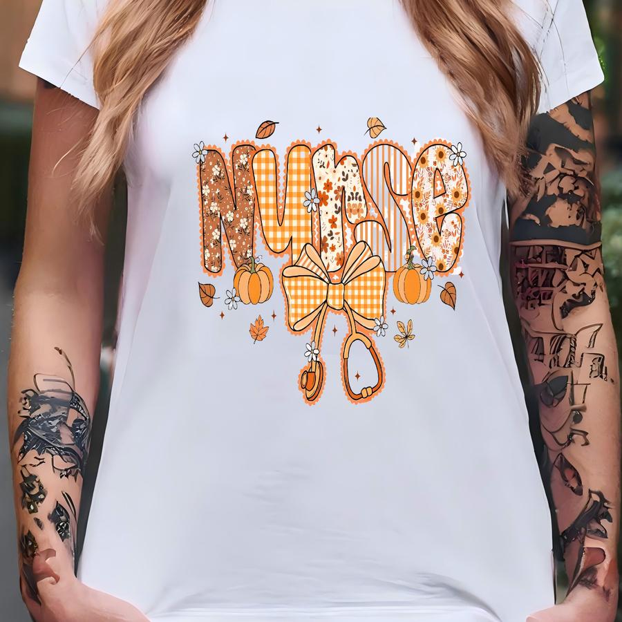 Fall Nurse Shirt Floral Autumn Pumpkin Nurse Tee Cozy Seasonal Nurse Outfit For Work Thanksgiving T-shirt