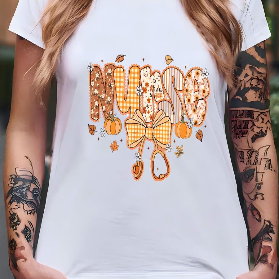 Fall Nurse Shirt Floral Autumn Pumpkin Nurse Tee Cozy Seasonal Nurse Outfit For Work Thanksgiving Medical Worker Appreciation Gift T-shirt