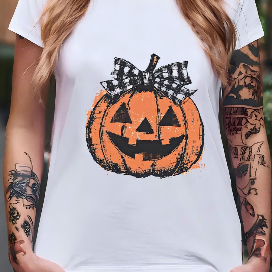 Retro Pumpkin Halloween Shirt – Cute Jack O’ Lantern Tee With Bow, Fall Top, Cozy Autumn Pumpkin Patch Graphic Shirt T-shirt