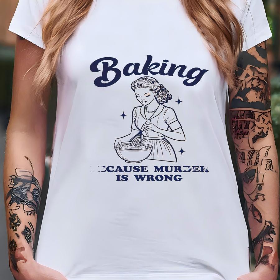 Baking Because Murder Is Wrong Sweatshirt, Funny Baking Tshirt, Baking Shirt, Gift For Bakers, Baking Gift For Mom, Baker Gift, Baking Tee T-shirt