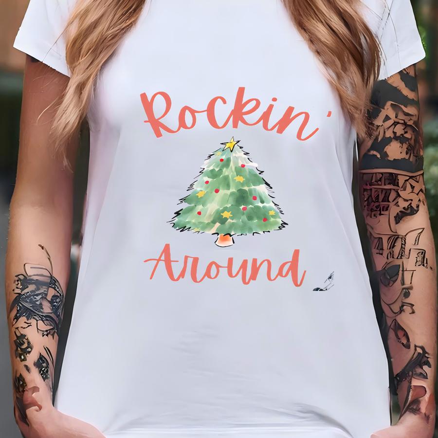 Rockin Around Christmas Tree Shirt, Rocking, Cute, Funny, Gift, Womens, Ladies, Unisex, Santa, Xmas, Family, Holidays, Party, Sweater T-shirt