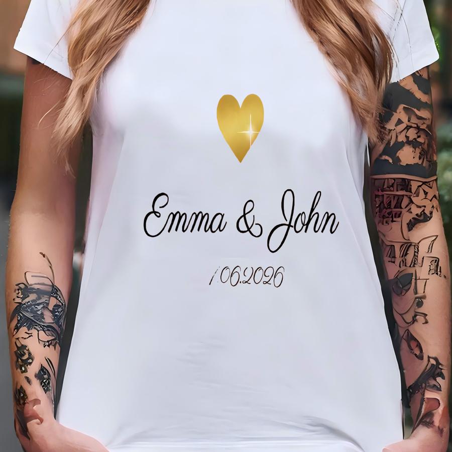 Custom Wedding Hoodie: Minimalist Golden Heart, Elegant Script, Date Design T-shirt