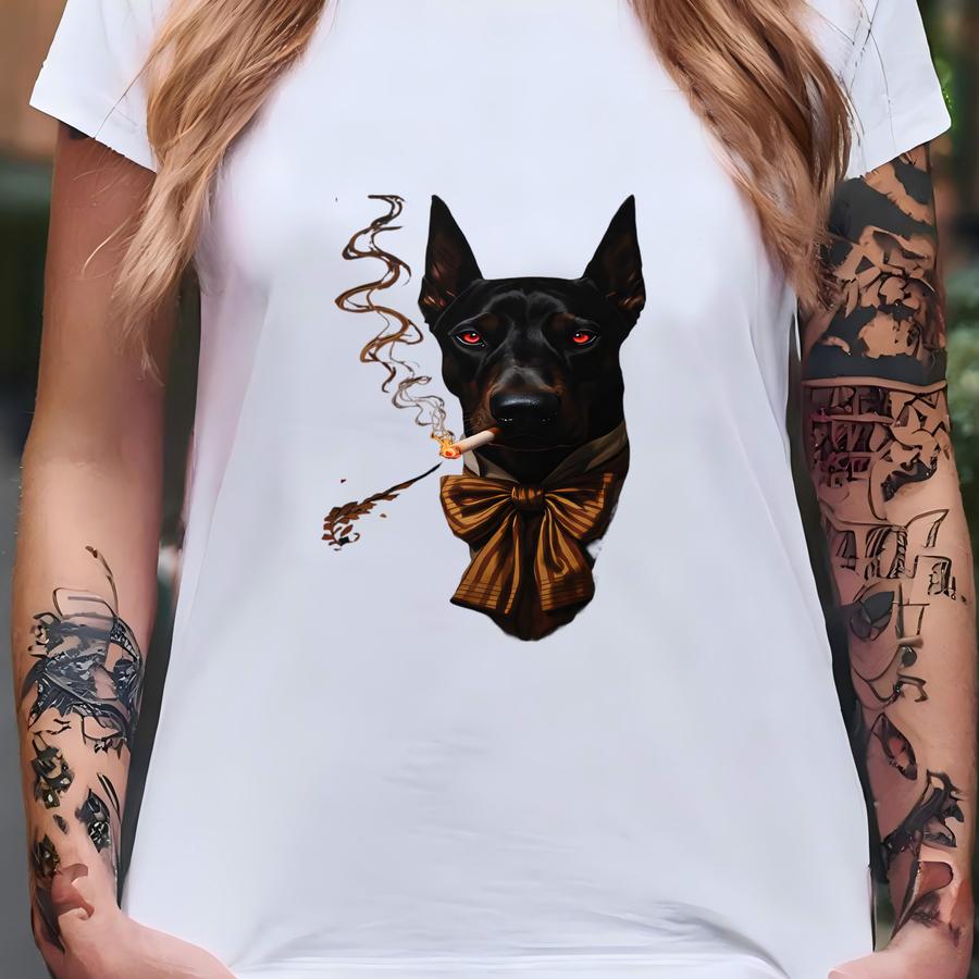 Doberman Framed Poster: Dog Art, Animal Portrait, Smoking Dog, Red Eyes T-shirt