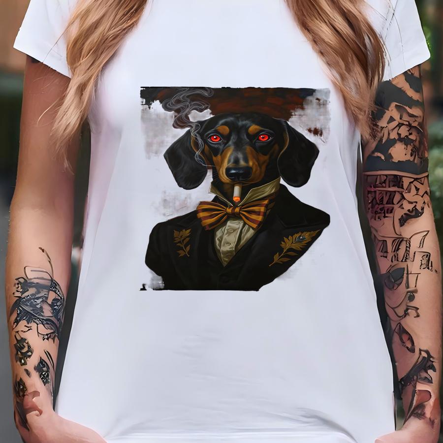 Framed Poster: Dachshund Dog, Cigar Smoking, Elegant, Art Deco Style T-shirt