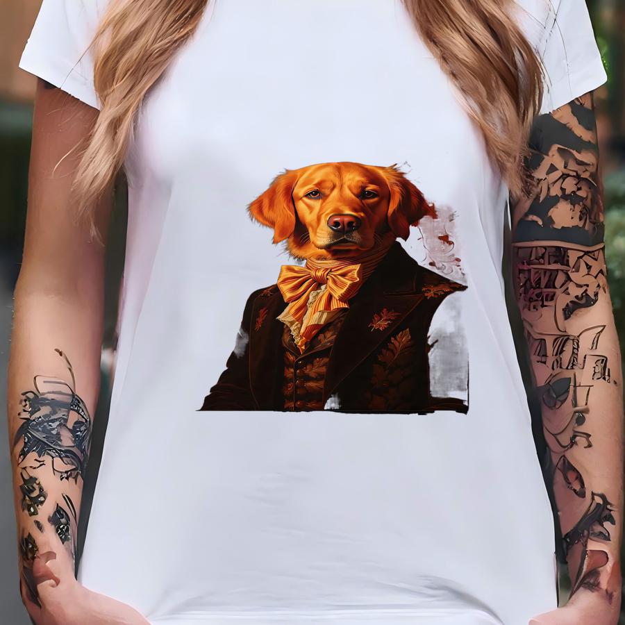 Dapper Dog Framed Poster: Golden Retriever, Renaissance Style, Ornate T-shirt