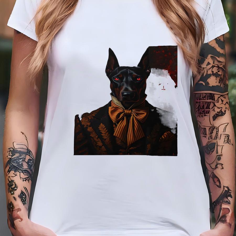 Doberman Framed Poster: Canine Portrait, Dark Academia, Dapper Dog T-shirt