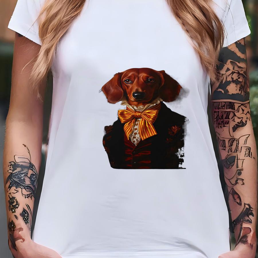 Dachshund Framed Poster: Elegant Pet Portrait, Canine Art, Victorian Style T-shirt