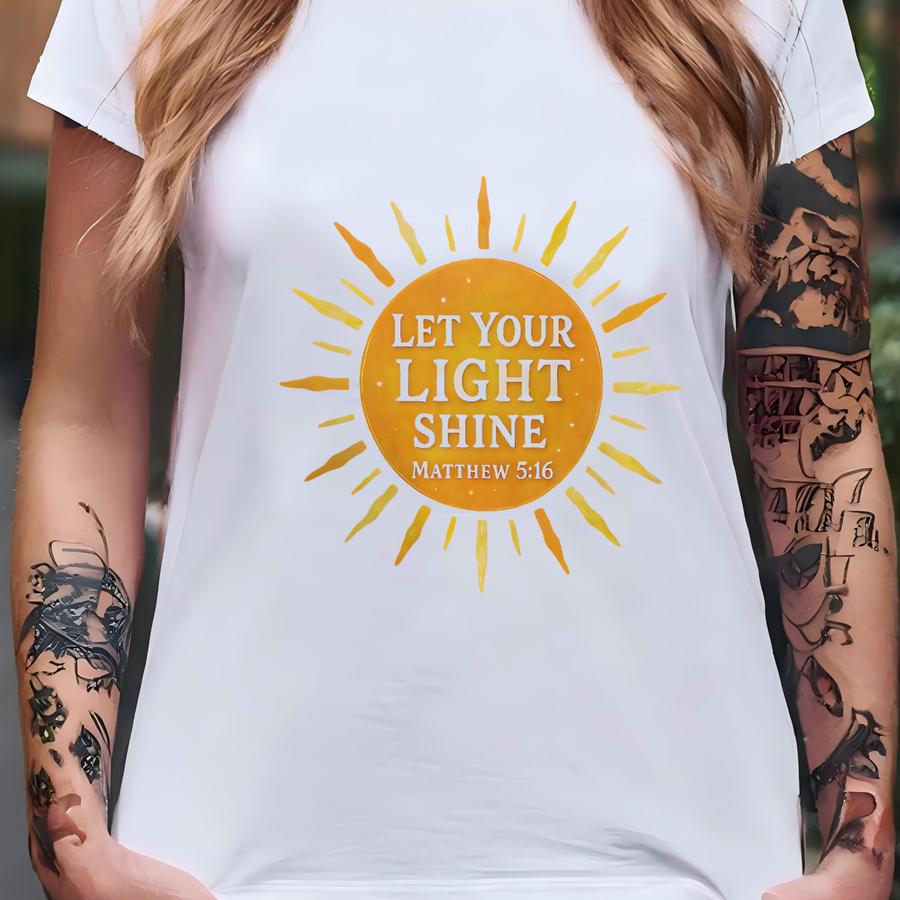 Christian T Shirt, Let Your Light Shine Matthew 5 16, Bible Verse Shirt, Religious Tee, Gift For Christians, Church Apparel T-shirt