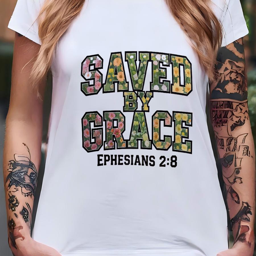 Saved By Grace Floral Hoodie - Ephesians 2:8 Christian Tee T-shirt