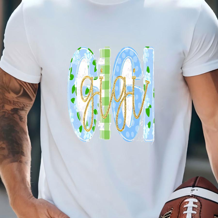 Gigi Png | Hand Drawn Hydrangea | Gigi | Coquette | Grandmillennial | Digital Instant Download | Preppy | Alpha | Dtf | Sublamination | Gold T-shirt