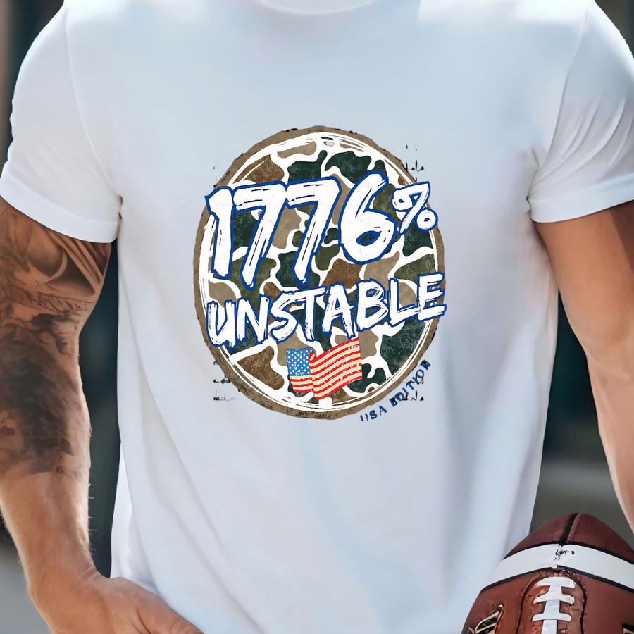 1776% Unstable | Patriotic Png | Digital Download | Red White Blue | America | Usa | Fourth Of July | Stars And Stripes | Camoflauge T-shirt