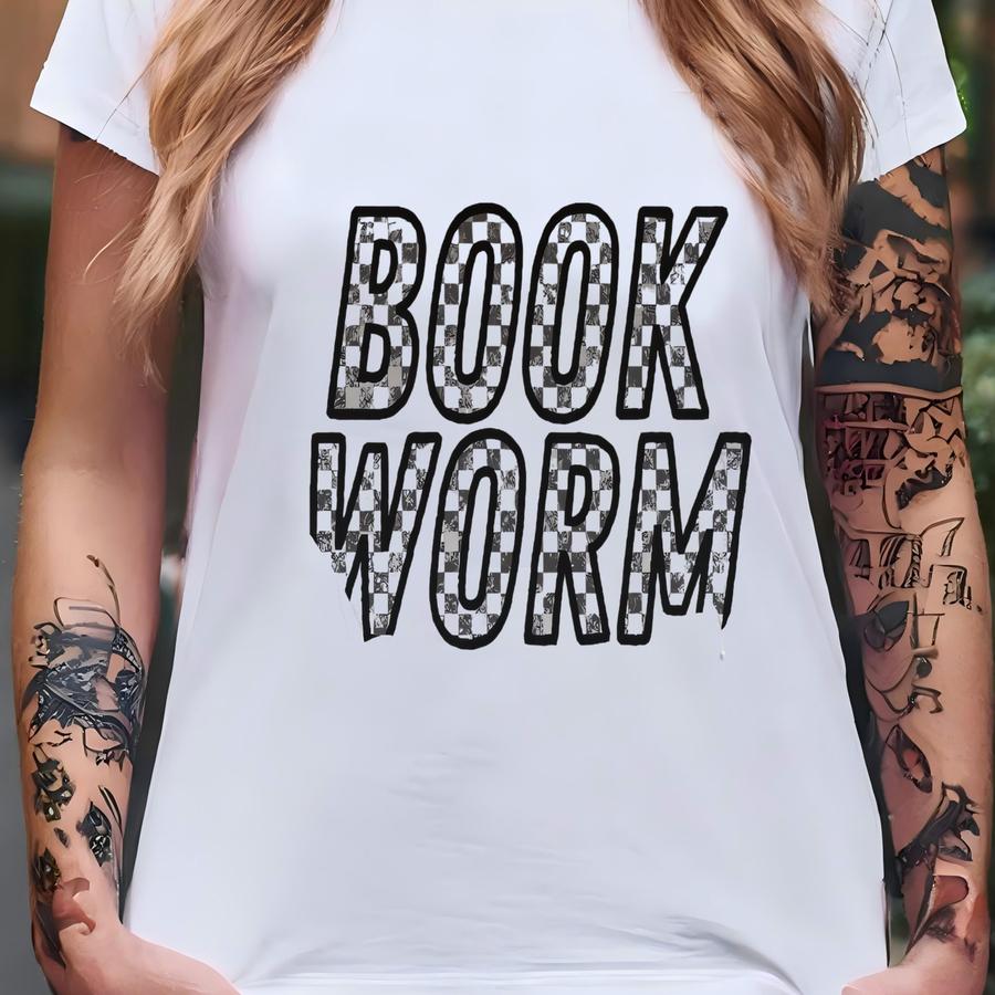 Checkered Book Worm Crewneck | Cute Retro Crewneck, Book Lover Sweatshirt, In My Reading Era, Bookish Hoodie, Gift For Her, Book Gift T-shirt