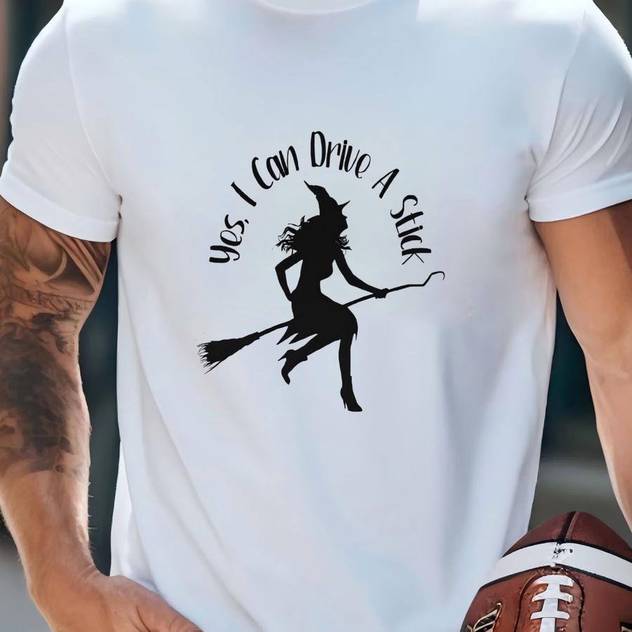 Funny Witch Hoodie: Yes I Can Drive A Stick - Spooky Halloween Costume T-shirt