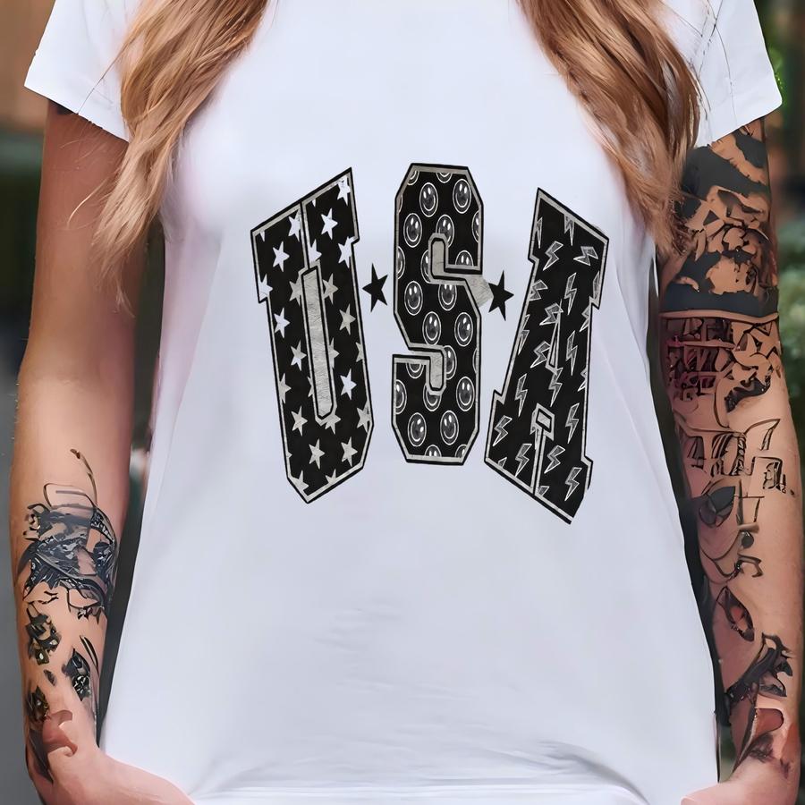 Usa Crewneck | Gift For Her, Graphic Crewneck, Patriotic, Retro Crew, American Flag, Face Shirt, 4th Of July Shirt, Happy Face T-shirt