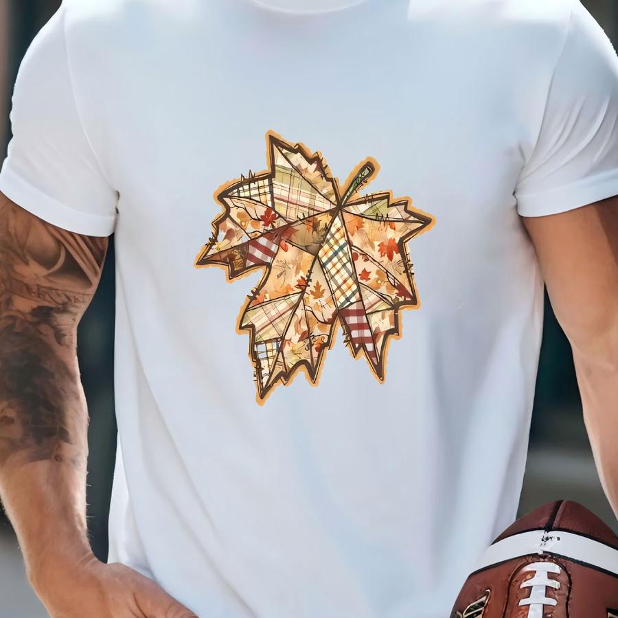 Retro Patchwork Fall Leaf Shirt: Women's Autumn Tee T-shirt
