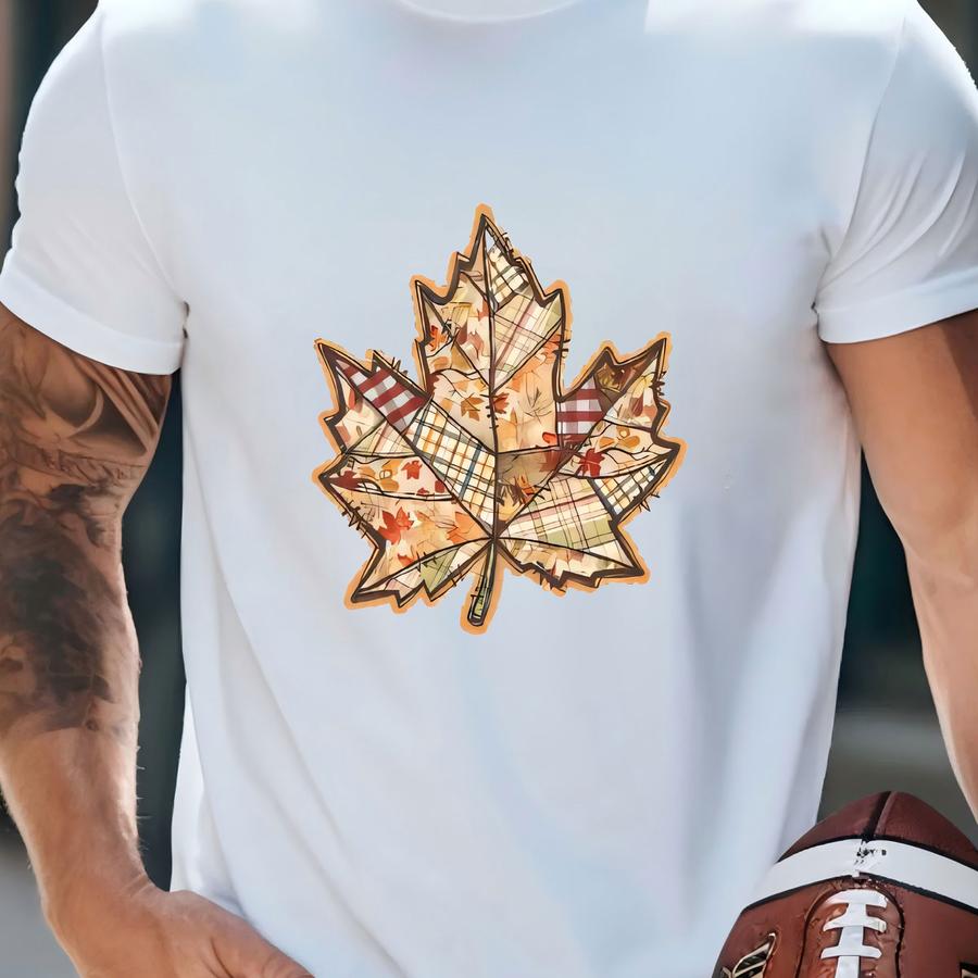 Gift Patchwork Maple Leaf Sweatshirt: Vintage Cozy Autumn Fall Tee T-shirt